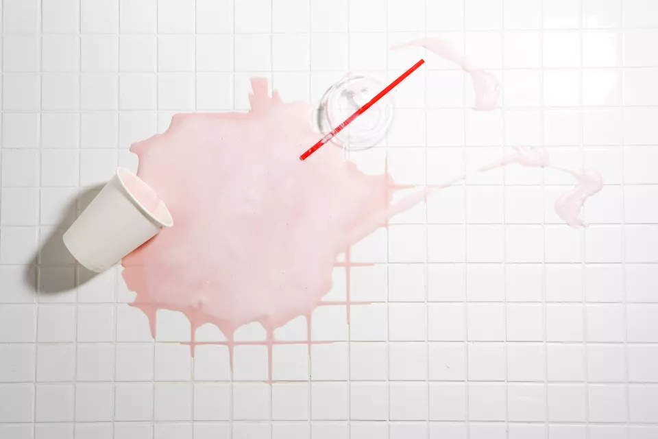 رژلب، مداد شمعی، رنگ و جوهر: ابتدا با یک اسفنج آغشته به الکل، ناحیهی مدنظر را الکلی کنید. سپس بعد از گذشت پنج دقیقه، با استفاده از یک اسفنج تمیز، لکه را از بین ببرید.