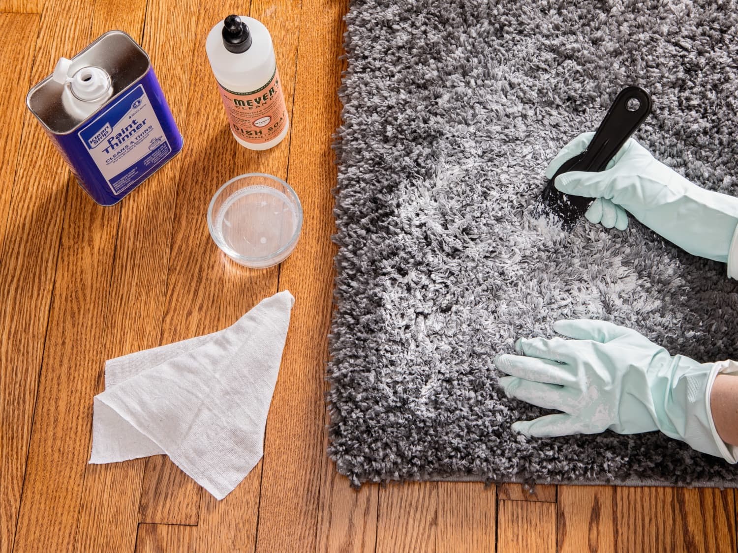 یک اسفنج تمیز یا برس دندانه نرم را به محلول آغشته کرده و فرش را تمیز کنید. هربار تکه ای از فرش را تمیز کنید.