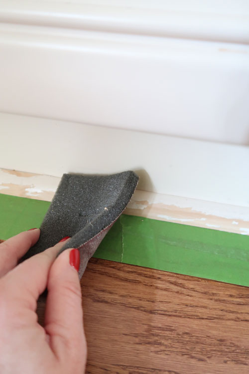به آرامی محل را سنباده بکشید تا رنگ کاملاً از آن قسمت جدا شود. دوباره زمین را جاروبرقی بکشید و با دستمال سطح را با دقت تمیز کنید تا عاری از هرگونه اضافۀ رنگ و گرد و خاک شود.